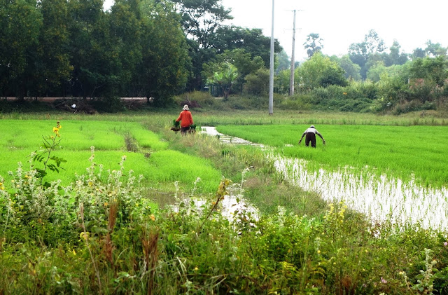 We passed by many rice fields, such as the one below where people were working in the fields.